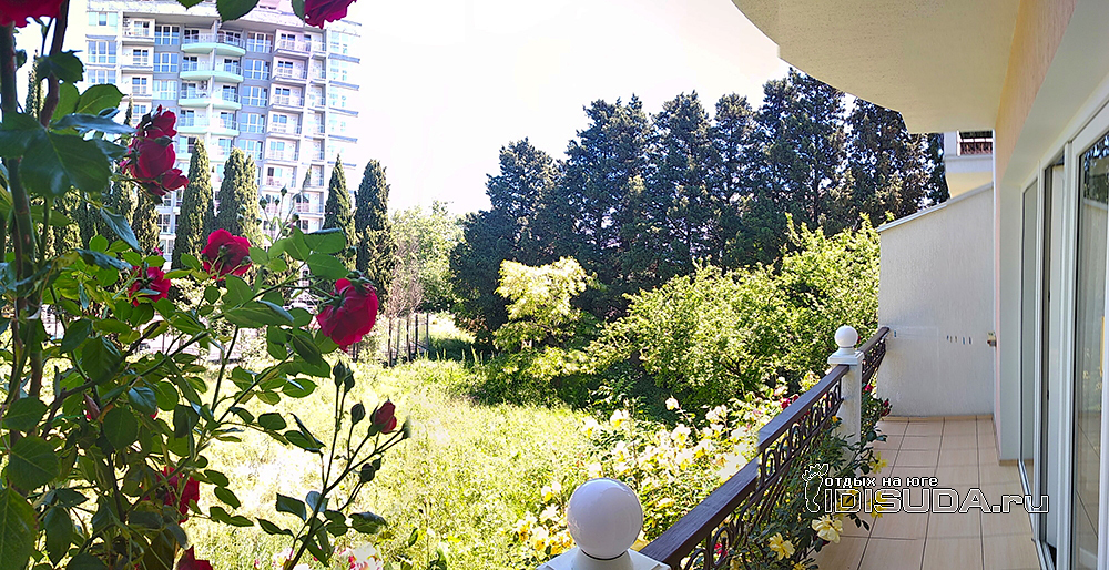 2 номера "Полулюкс" и одни "Апартаменты с кухней". Двор данного корпуса представляет собой уютную зеленую площадку с цветами и зелеными растениями.