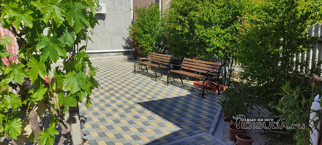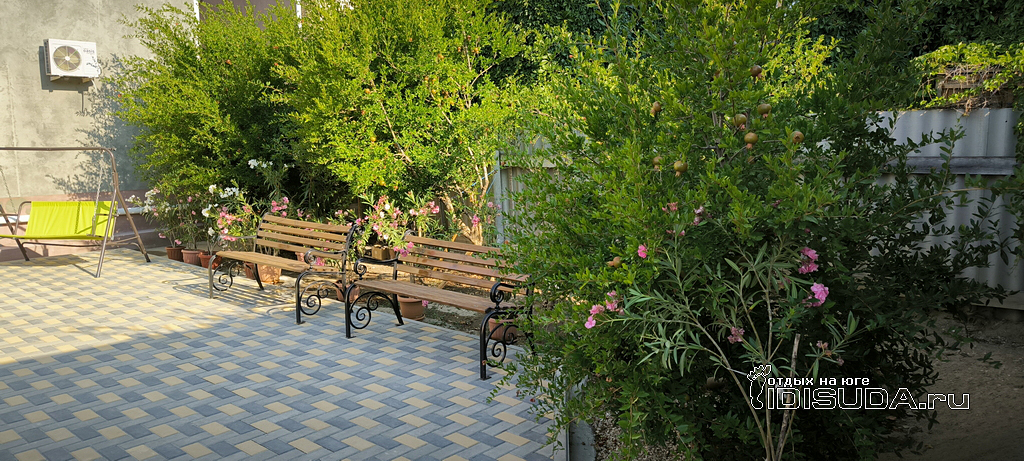 «Надежда - гостевой дом» - минута до моря, территория 38 соток с хвойными деревьями.