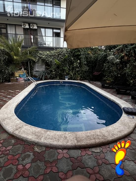 Отдыхали в данном отеле в сентябре с семьёй. Все очень понравилось. В номерах чисто, все необходимое есть. Двор тоже всегда чистый, с теплым бассейном, до моря минут 15 идти.